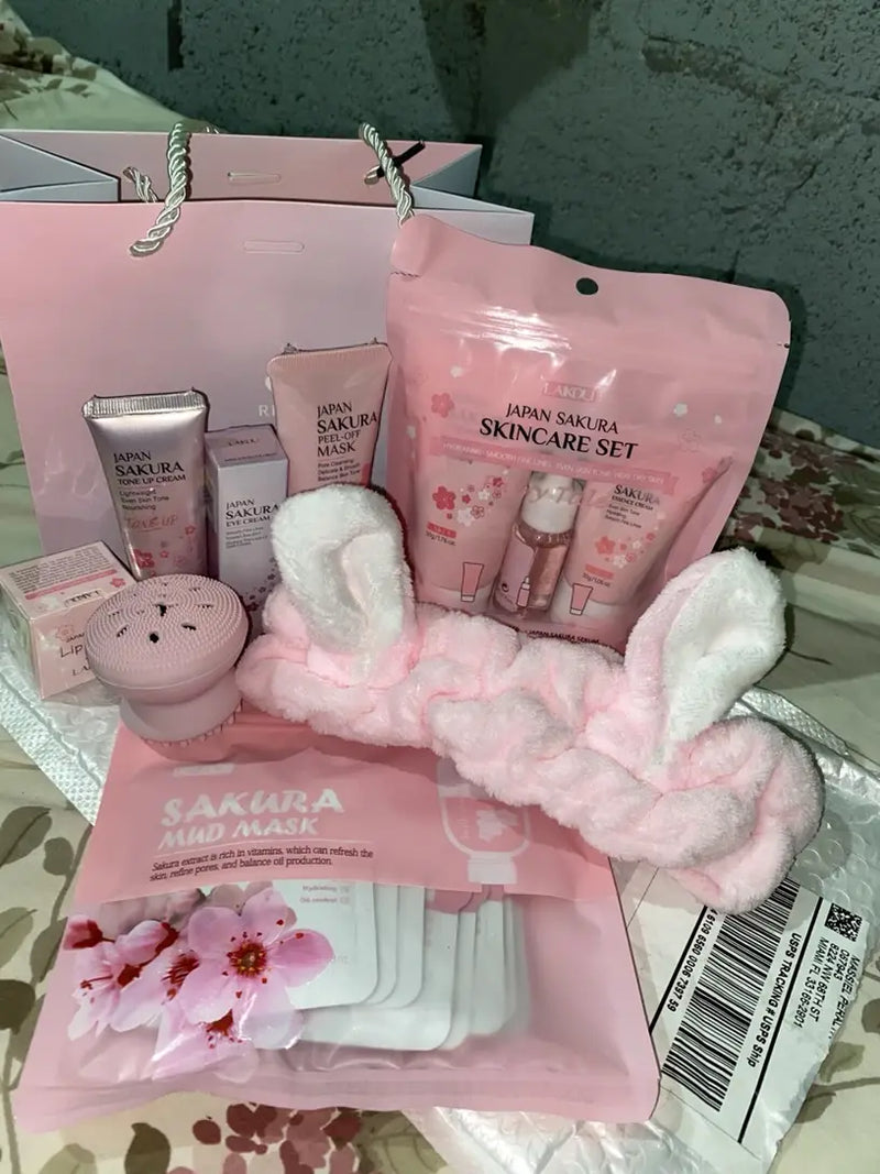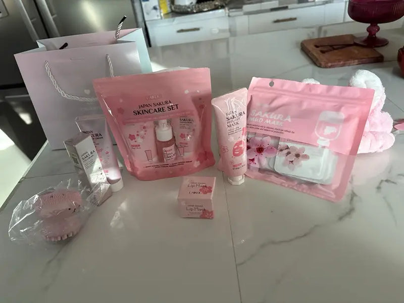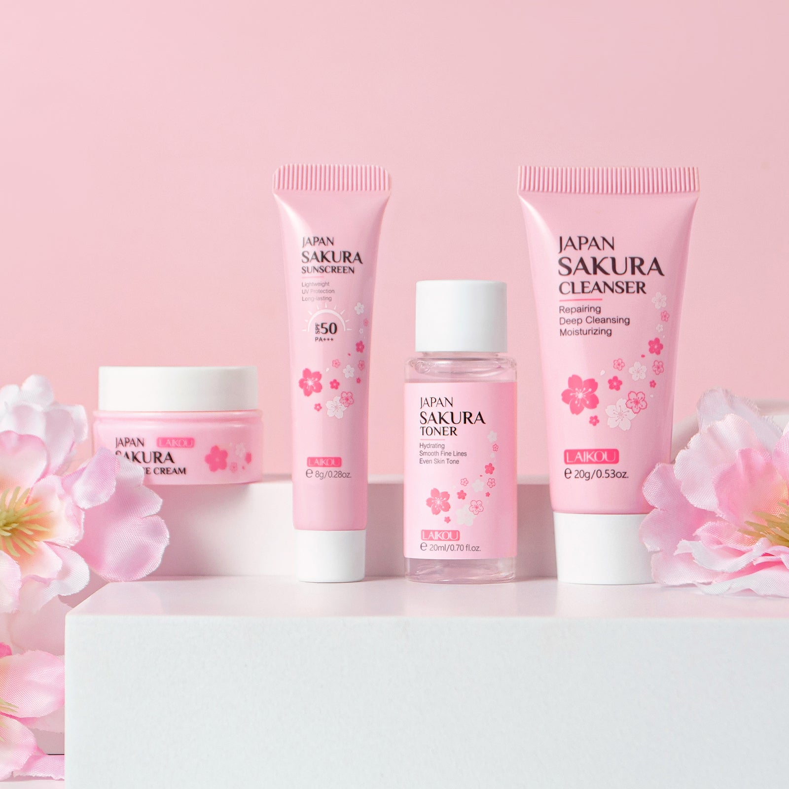 LAIKOU Japan Sakura Skincare Set - Toner Serum, Cream Cleanser, Essence Cream